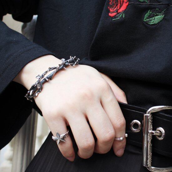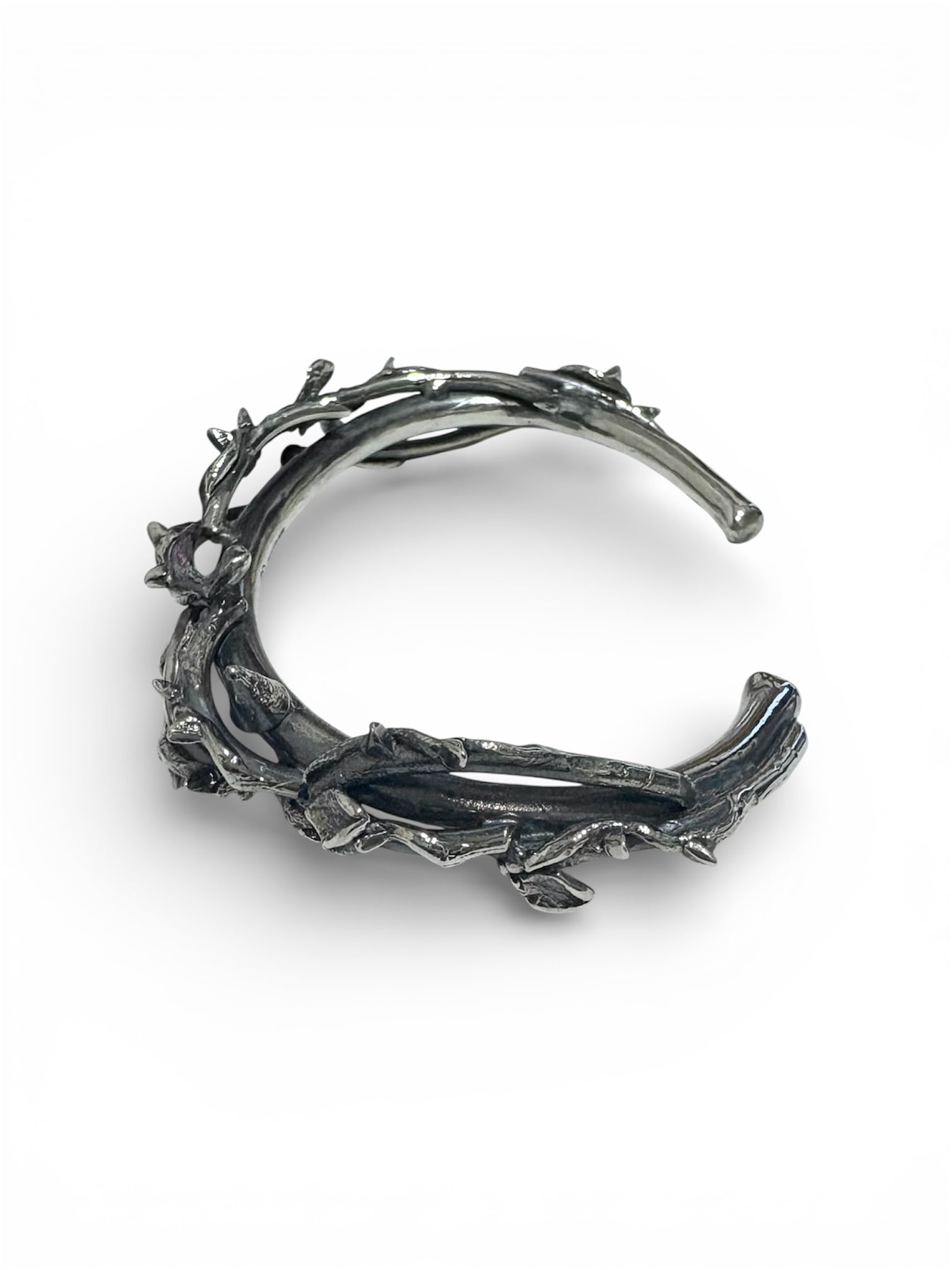プレーンバングルに薔薇のつたが侵食したデザイン