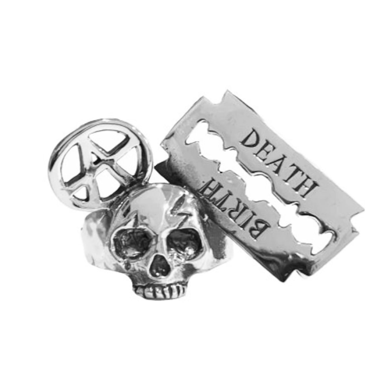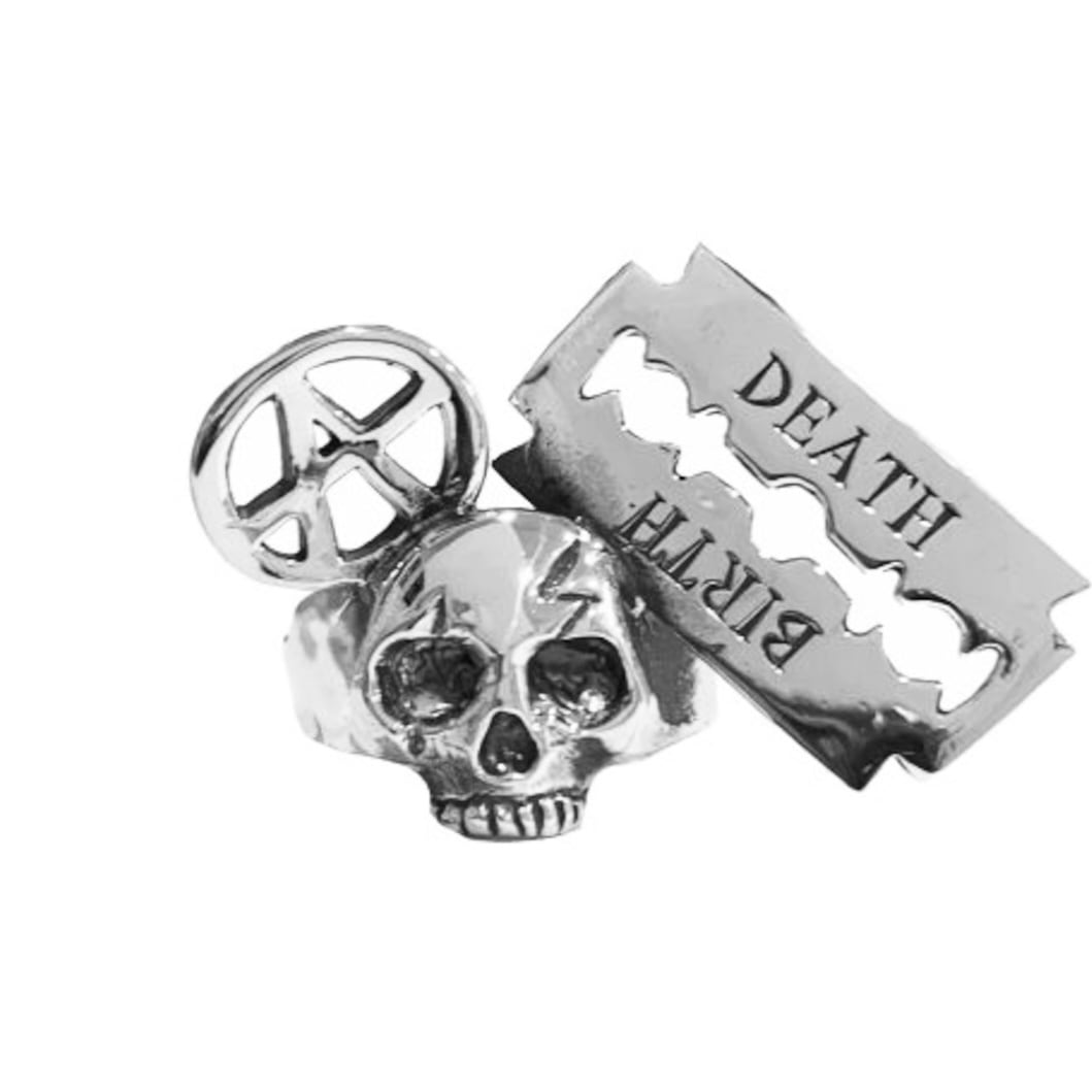 ANARCHY SKULL RAZOR BLADE RING