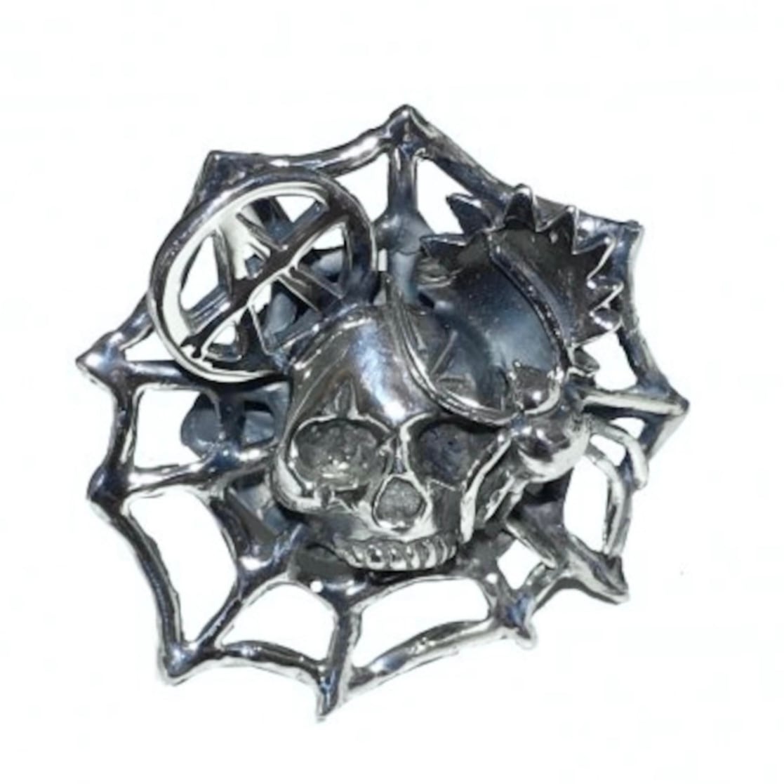SPIDERWEB ANARCHY SKULL RING