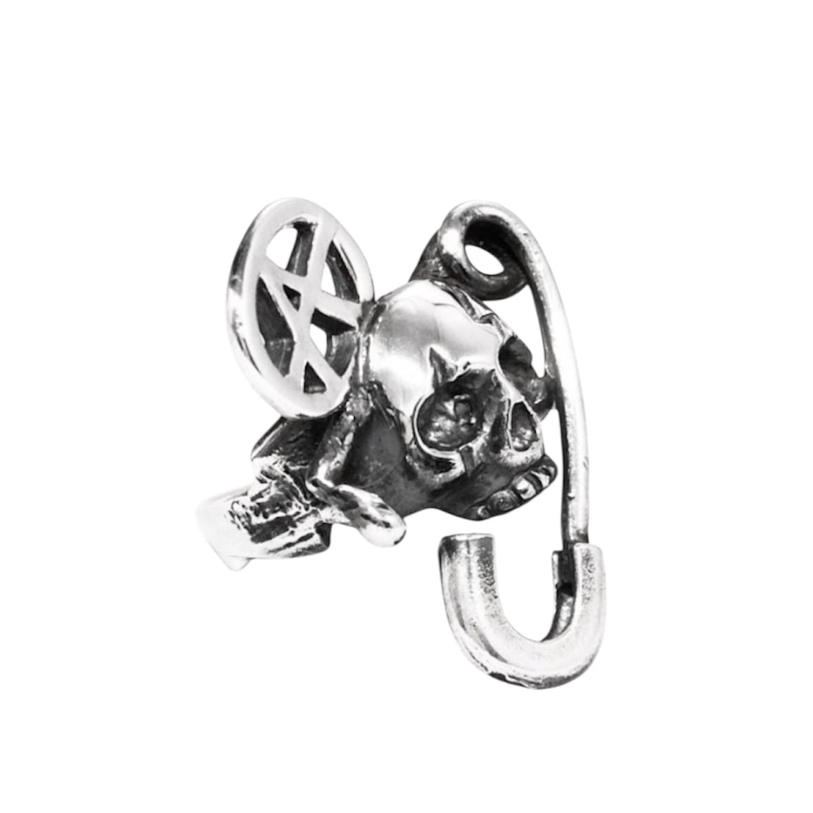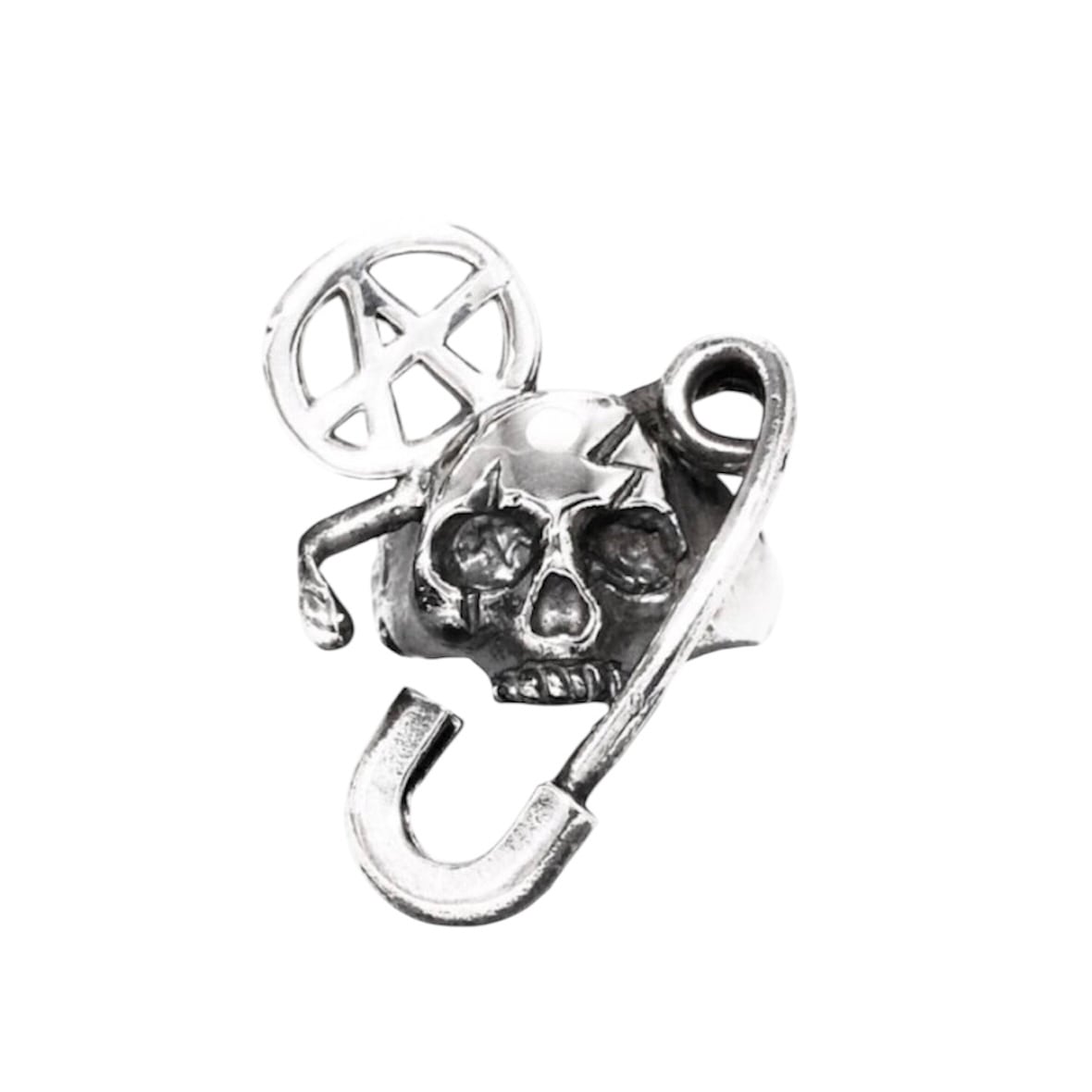 PUNK SAFETY PIN ANARCHY SKULL RING