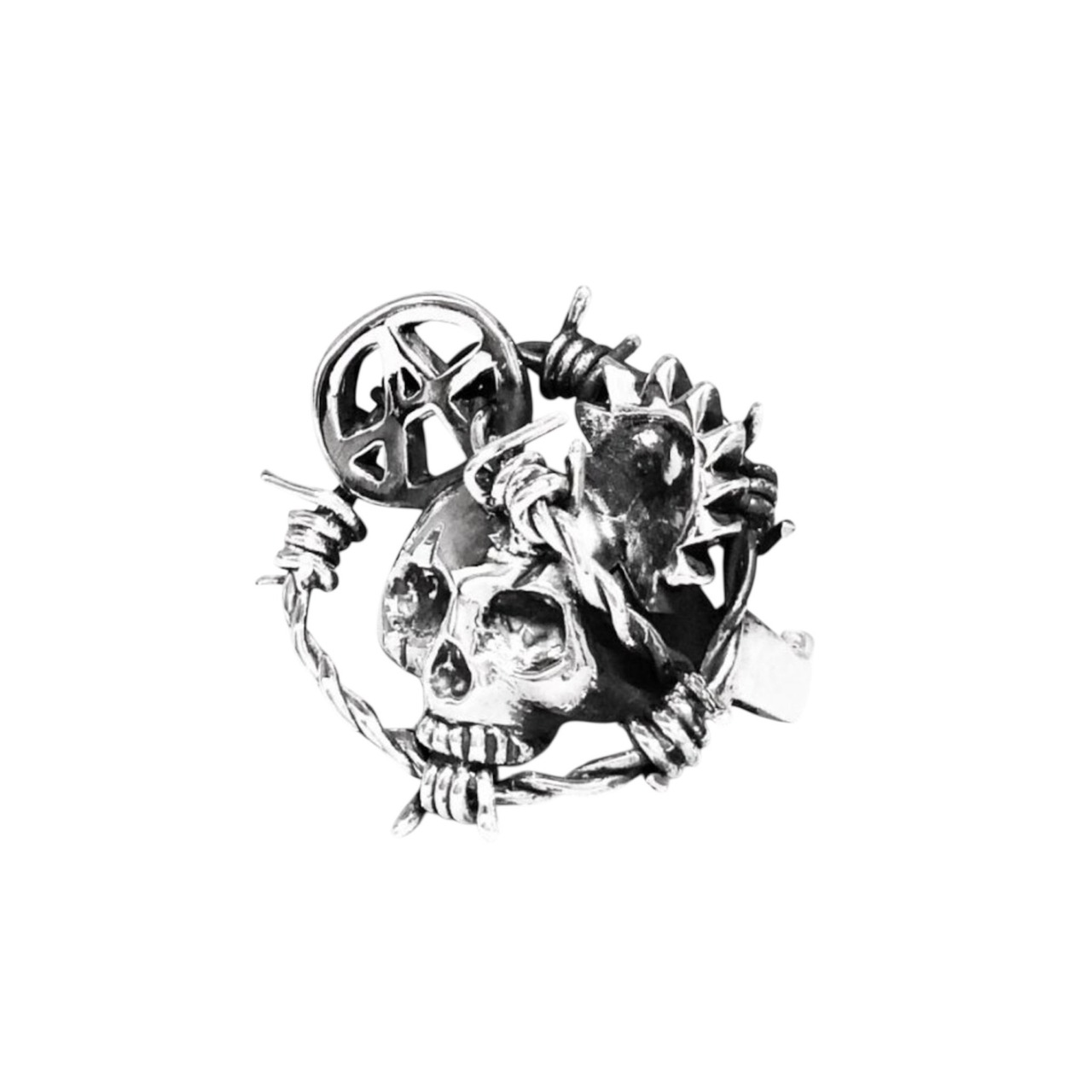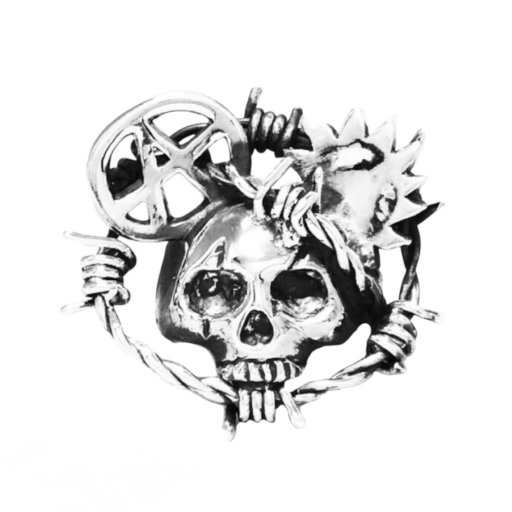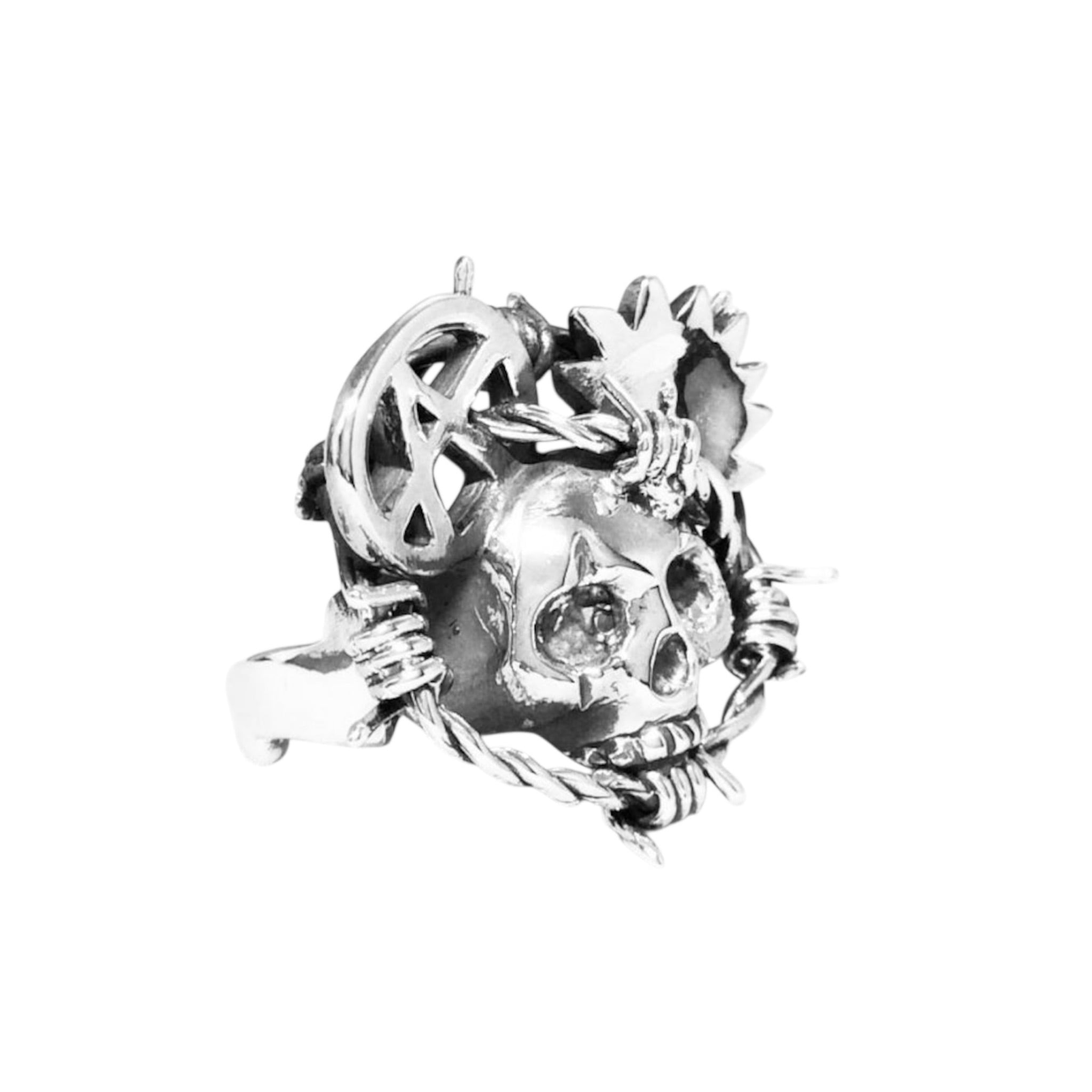 CIRCLE BARBED WIRE ANARCHY SKULL RING