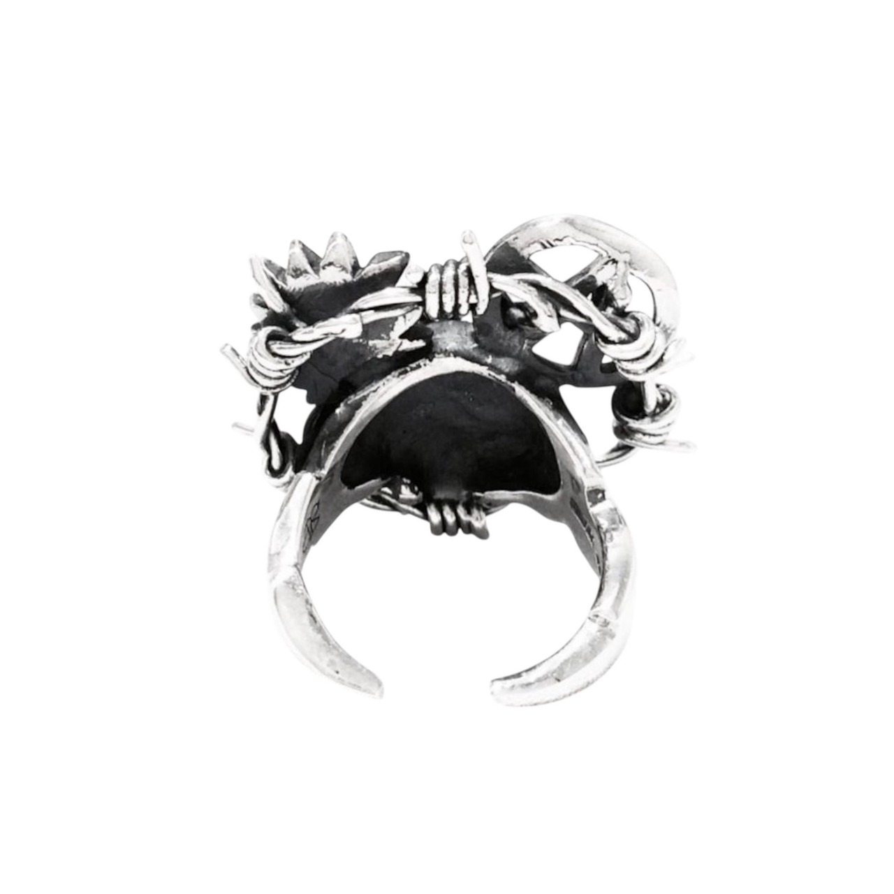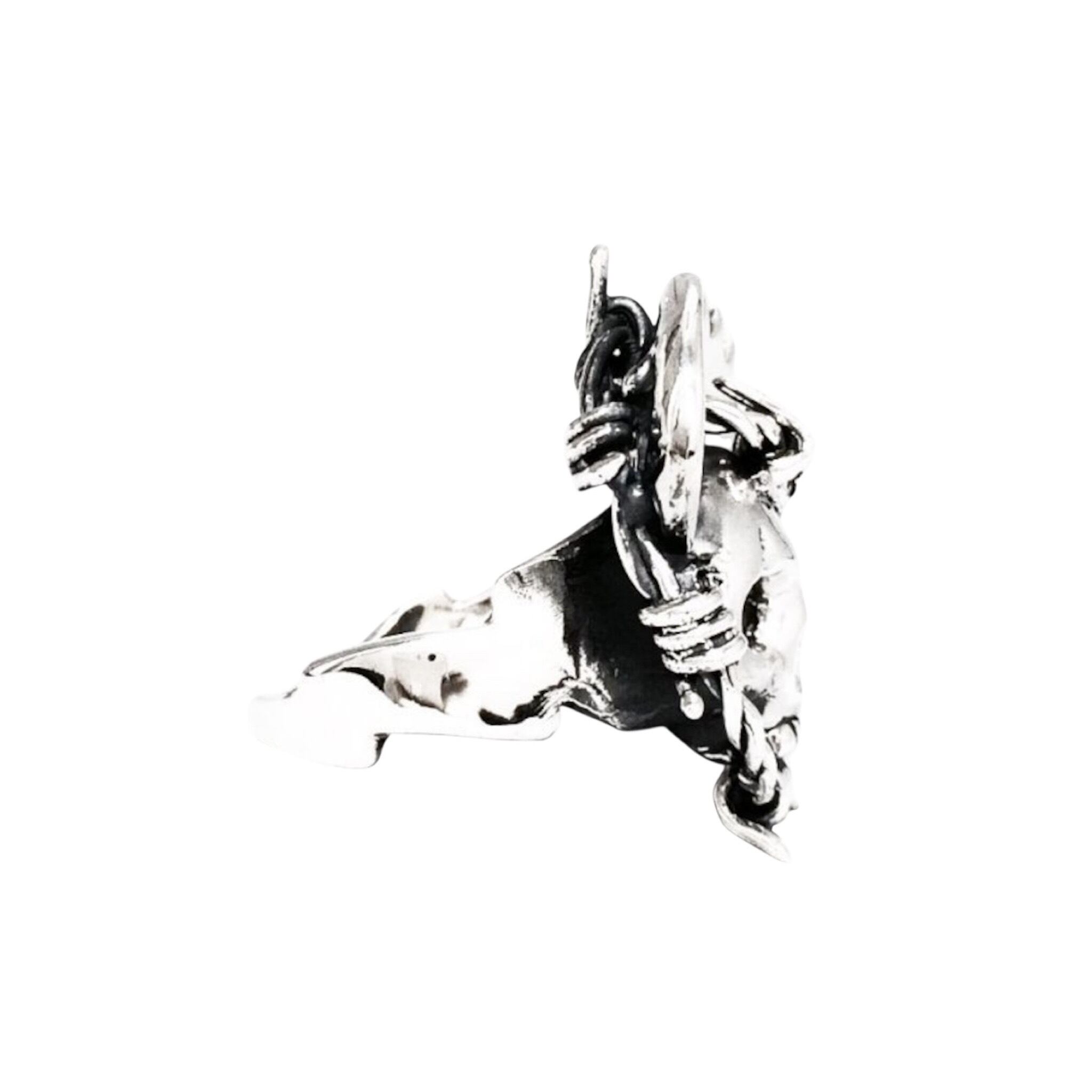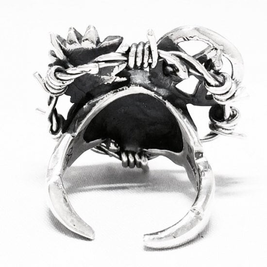 CIRCLE BARBED WIRE ANARCHY SKULL RING