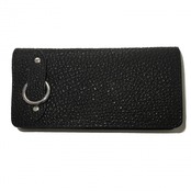 『革の黒ダイヤ』と異名を持つ「黒桟革」は、まるで小さなダイヤの粒を無数に散りばめたような輝きを放ちます。また、摩擦にも強く現在では剣道の胴胸などの武道具にも使用され、戦国時代には大将クラスの甲冑にも使われていたほどの代物です。